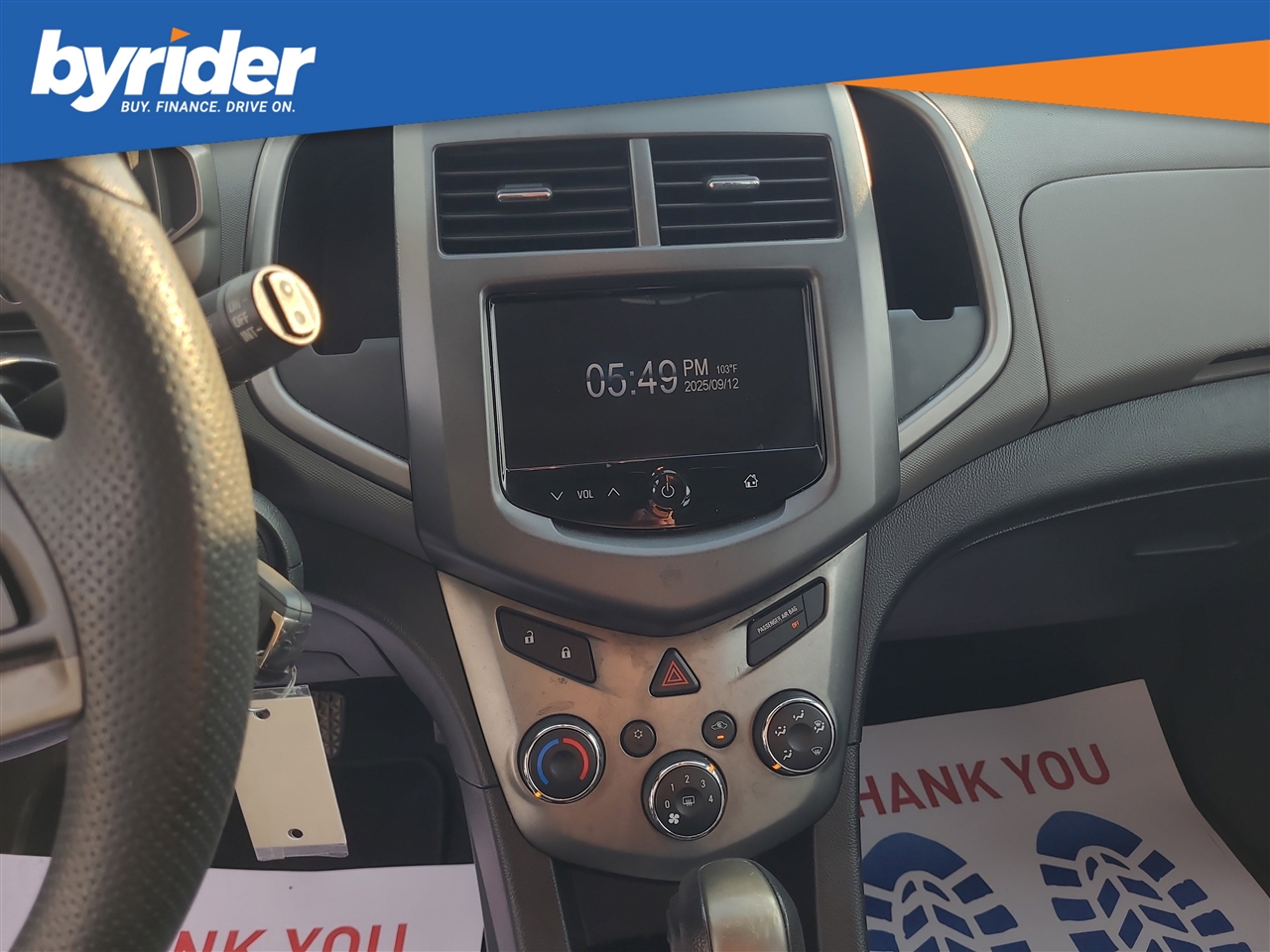IIHS Top Safety Pick built after February 2015. Only 97,035 Miles! Delivers 37 Highway MPG and 27 City MPG! This Chevrolet Sonic boasts a Turbocharged Gas I4 1.4L/83 engine powering this Automatic transmission. WHEELS, 16 (40.6 CM) SILVER-PAINTED ALUMINUM, TRANSMISSION, 6-SPEED AUTOMATIC, TIRES, P205/55R16 ALL-SEASON, BLACKWALL.* This Chevrolet Sonic Features the Following Options *FUN AND SUN PACKAGE includes (LUV) ECOTEC Turbo 1.4L engine, (RRV) 16 (40.6 cm) silver-painted aluminum wheels, (QLG) P205/55R16 all-season, blackwall tires and (CF5) power sunroof , SUNROOF, POWER, TILT-SLIDING WITH EXPRESS-OPEN AND WIND DEFLECTOR, SUMMIT WHITE, SEATS, FRONT BUCKET WITH RECLINE AND HEIGHT-ADJUSTABLE HEADRESTS (STD), REAR VISION CAMERA, JET BLACK/DARK TITANIUM, DELUXE CLOTH SEAT TRIM, ENGINE, ECOTEC TURBO 1.4L VARIABLE VALVE TIMING DOHC 4-CYLINDER SEQUENTIAL MFI (138 hp [103 kW] @ 4900 rpm, 148 lb-ft of torque [199.8 N-m] @ 1850 rpm/auto, 2500 rpm/manual), CHEVROLET MYLINK RADIO, AM/FM STEREO WITH SEEK-AND-SCAN AND DIGITAL CLOCK includes Bluetooth streaming audio for music and select phones; voice recognition for compatible phone; Pandora, TuneIn radio, Stitcher and Siri Eyes Free voice recognition smartphone compatible; all functions controlled through 7 diagonal color touch-screen; deletes card slot on center console, no CD player included, AXLE, 3.23 FINAL DRIVE RATIO, AUDIO SYSTEM FEATURE, USB PORT.* This Chevrolet Sonic is a Superstar! *IIHS Top Safety Pick built after February 2015, KBB.com 10 Coolest New Cars Under $18,000.* See What the Experts Say!*As reported by KBB.com: The 2015 Chevy Sonic sedan and hatchback are cute, fun to drive, extremely good on gas, priced to sell, and full of features younger buyers covet (like built-in Wi-Fi). Cool colors and a very high-end looking interior should help seal the deal.* Stop By Today *A short visit to Byrider - MS104 located at 2600 Highway 80 East, Pearl, MS 39208 can get you a reliable Sonic today!
