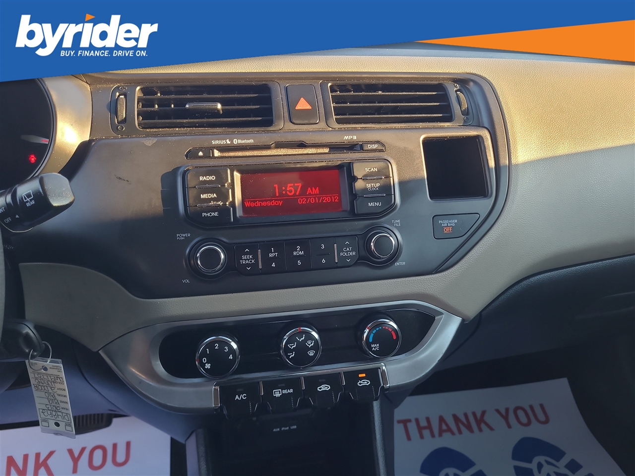 Only 109,587 Miles! Scores 36 Highway MPG and 28 City MPG! This Kia Rio boasts a Gas I4 1.6L/97 engine powering this Automatic transmission. CLEAR WHITE, CARPETED FLOOR MATS, BEIGE, SEAT TRIM.*This Kia Rio Comes Equipped with These Options *Vehicle stability management (VSM), Variable intermittent windshield wipers w/mist function, UV-reducing solar glass, Under-floor cargo tray, Tire pressure monitoring system (TPMS), Tire mobility kit, Tailgate trim, Smart alternator w/alternator management system (AMS), SIRIUS satellite radio, Side-impact door beams.* The Experts' Verdict...*As reported by KBB.com: Kia’s Rio for 2013 delivers a lot of goods for very little money. If value and fuel economy are as important as style and substance, the 2013 Kia Rio is sure to please. And, is doesn’t hurt that the Rio has the most horsepower and best warranty in its class.* Stop By Today *Come in for a quick visit at Byrider - MS104, 2600 Highway 80 East, Pearl, MS 39208 to claim your Kia Rio!