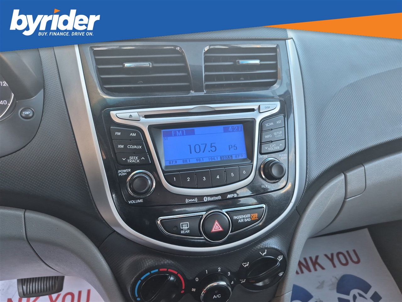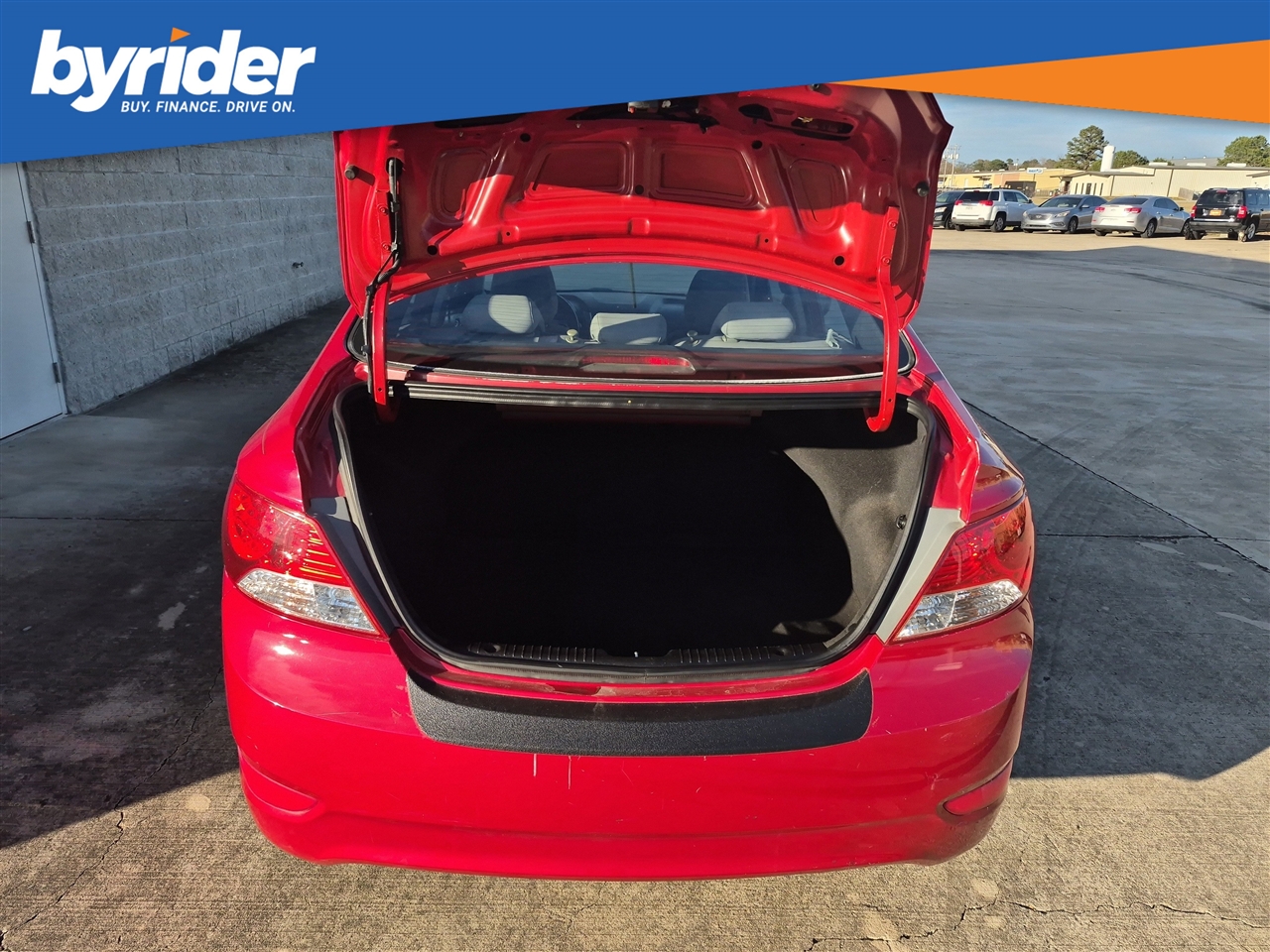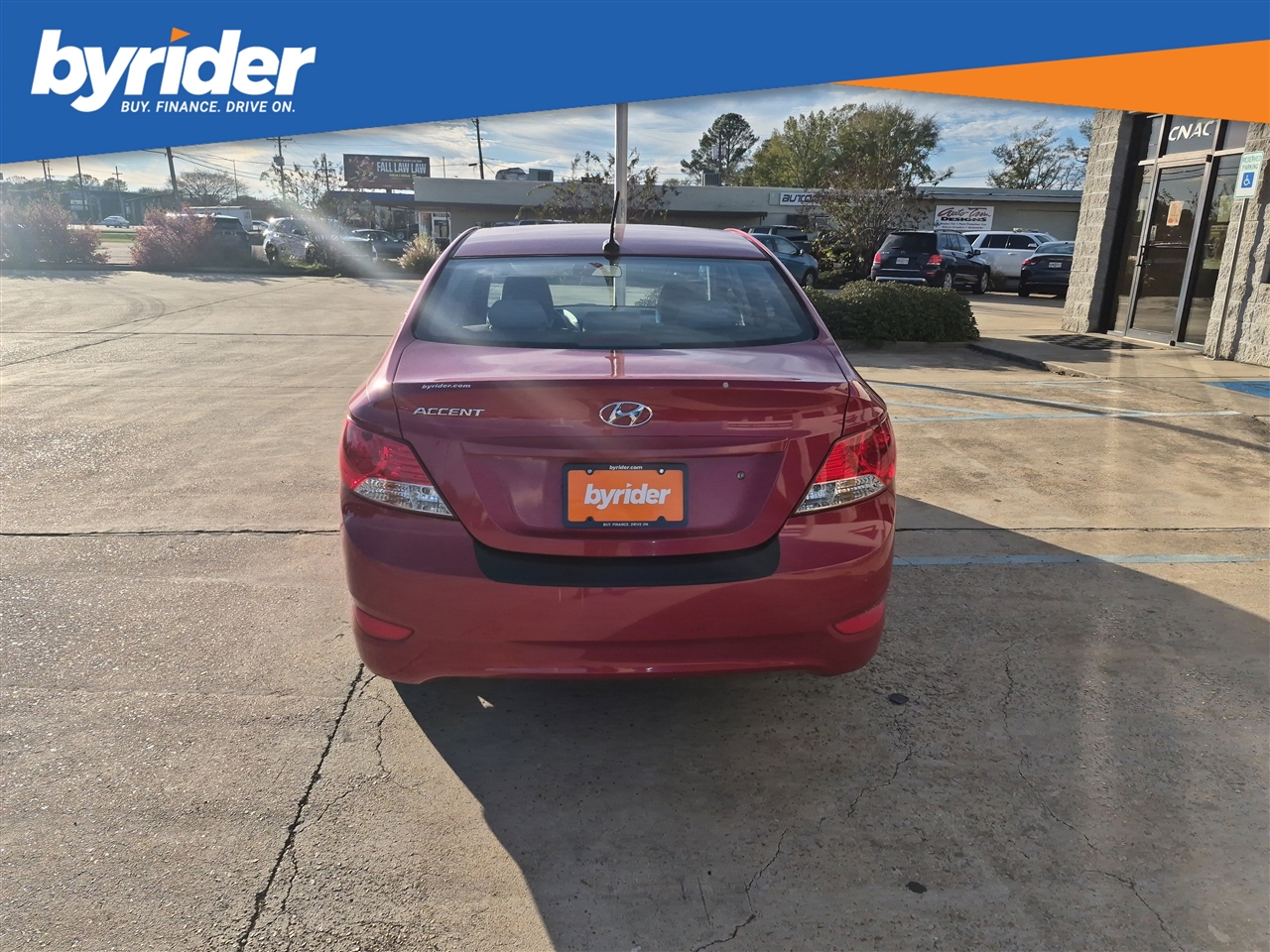 Only 85,585 Miles! Delivers 37 Highway MPG and 28 City MPG! This Hyundai Accent boasts a Gas I4 1.6L/97 engine powering this Automatic transmission. PREMIUM PKG -inc: steering wheel audio controls, cruise control, Bluetooth, premium cloth seats, chrome interior door handles, piano black accents, sliding front armrest w/storage box, fog lights, 16 alloy wheels w/P195/50R16 tires, rear disc brakes, MUDGUARDS, IPOD CABLE.* This Hyundai Accent Features the Following Options *CARPETED FLOOR MATS, CARGO NET, BOSTON RED, Warning lights -inc: oil pressure, battery, door ajar, airbag, seatbelt, TPMS, low fuel, brake, check engine, ABS, MDPS, ESC, fuel cap, trunk open, Warning chimes -inc: key-in-ignition, door ajar, seatbelt, Vehicle stability management system -inc: electronic stability control (ESC) & traction control system (TCS), Urethane shift knob, Trip computer -inc: distance to empty, average fuel consumption, average vehicle speed, elapsed time, instant fuel consumption, Torsion axle rear suspension -inc: gas shock absorbers, coil springs, Tire Pressure Monitoring System.* The Experts' Verdict...*As reported by KBB.com: If your limited budget has you thinking used car, you might be pleasantly surprised at just how much new car the 2013 Hyundai Accent can get you for around $15,000.* Visit Us Today *Treat yourself- stop by Byrider - MS104 located at 2600 Highway 80 East, Pearl, MS 39208 to make this car yours today!