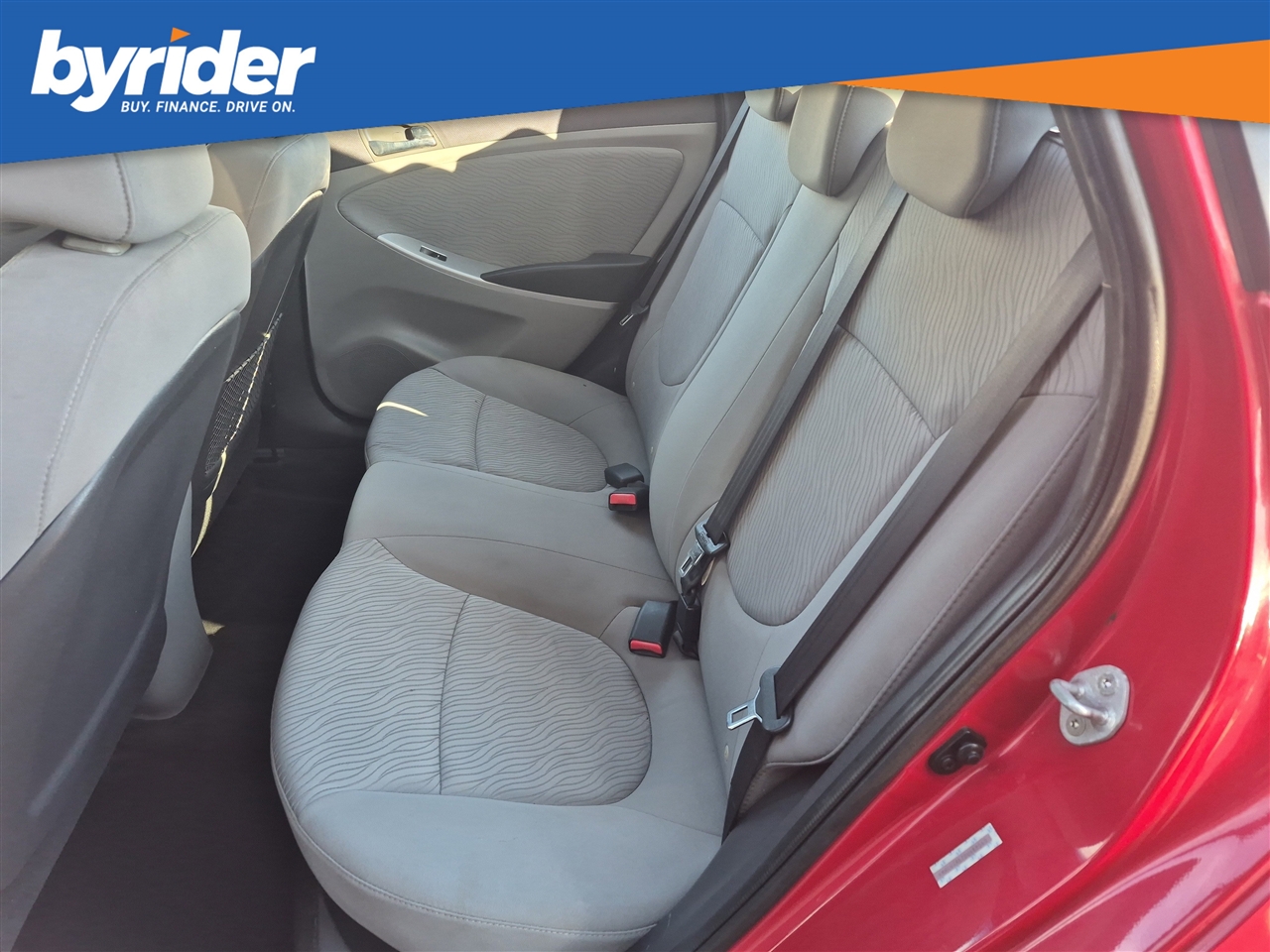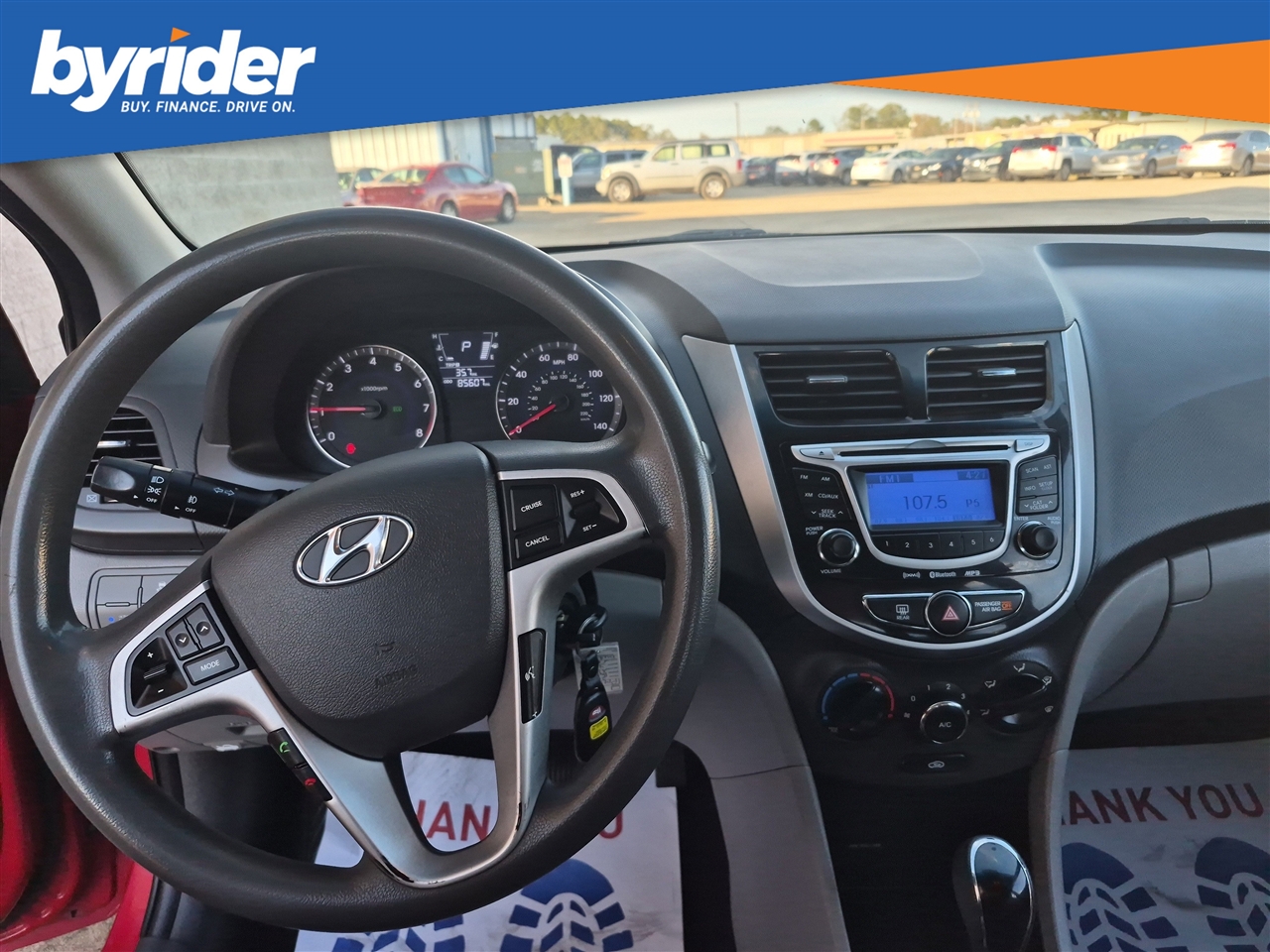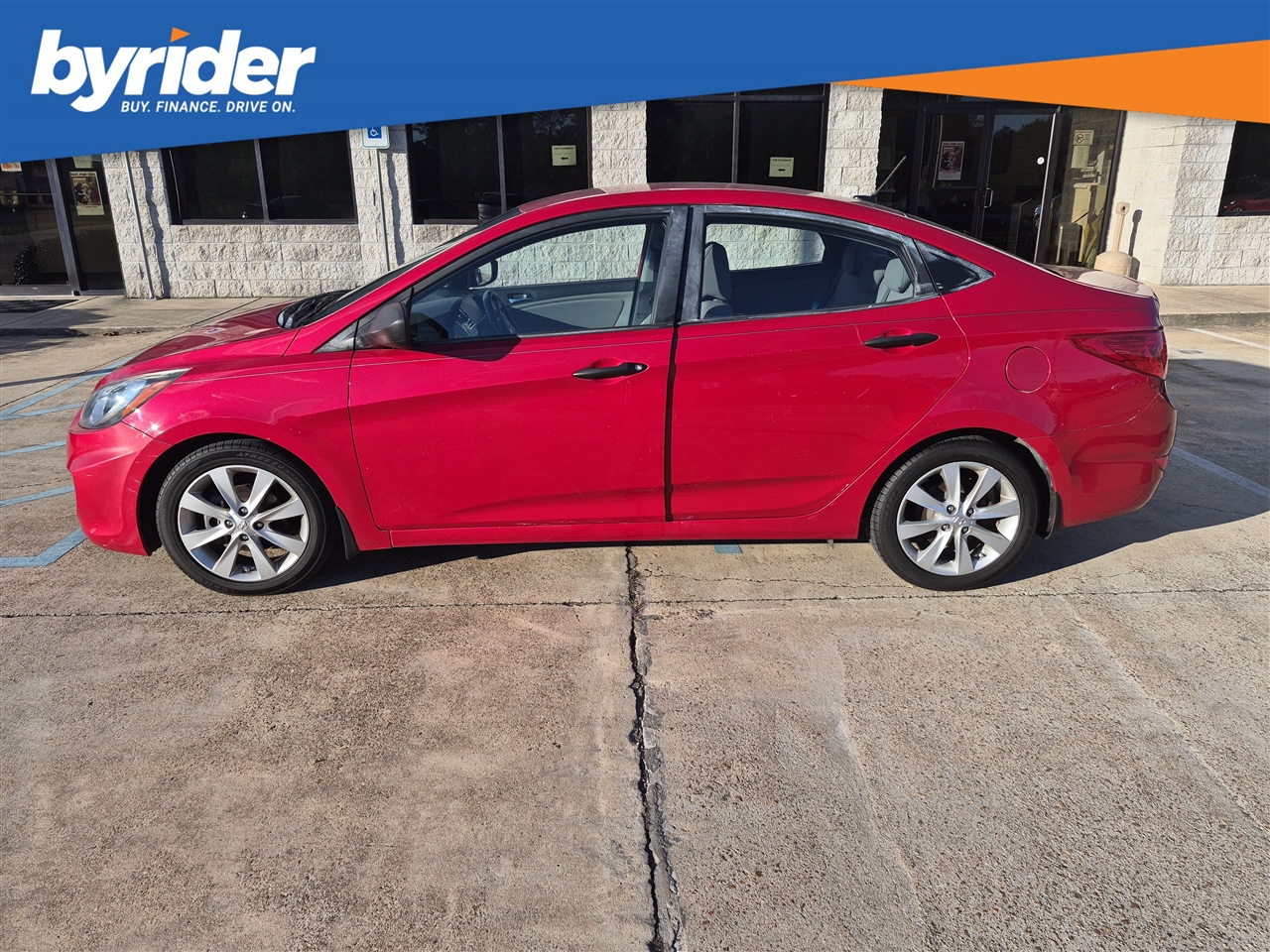 Only 85,585 Miles! Delivers 37 Highway MPG and 28 City MPG! This Hyundai Accent boasts a Gas I4 1.6L/97 engine powering this Automatic transmission. PREMIUM PKG -inc: steering wheel audio controls, cruise control, Bluetooth, premium cloth seats, chrome interior door handles, piano black accents, sliding front armrest w/storage box, fog lights, 16 alloy wheels w/P195/50R16 tires, rear disc brakes, MUDGUARDS, IPOD CABLE.* This Hyundai Accent Features the Following Options *CARPETED FLOOR MATS, CARGO NET, BOSTON RED, Warning lights -inc: oil pressure, battery, door ajar, airbag, seatbelt, TPMS, low fuel, brake, check engine, ABS, MDPS, ESC, fuel cap, trunk open, Warning chimes -inc: key-in-ignition, door ajar, seatbelt, Vehicle stability management system -inc: electronic stability control (ESC) & traction control system (TCS), Urethane shift knob, Trip computer -inc: distance to empty, average fuel consumption, average vehicle speed, elapsed time, instant fuel consumption, Torsion axle rear suspension -inc: gas shock absorbers, coil springs, Tire Pressure Monitoring System.* The Experts' Verdict...*As reported by KBB.com: If your limited budget has you thinking used car, you might be pleasantly surprised at just how much new car the 2013 Hyundai Accent can get you for around $15,000.* Visit Us Today *Treat yourself- stop by Byrider - MS104 located at 2600 Highway 80 East, Pearl, MS 39208 to make this car yours today!